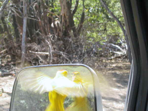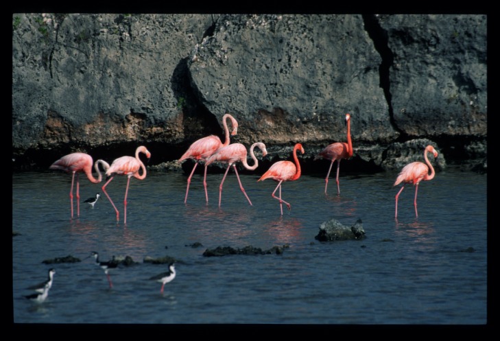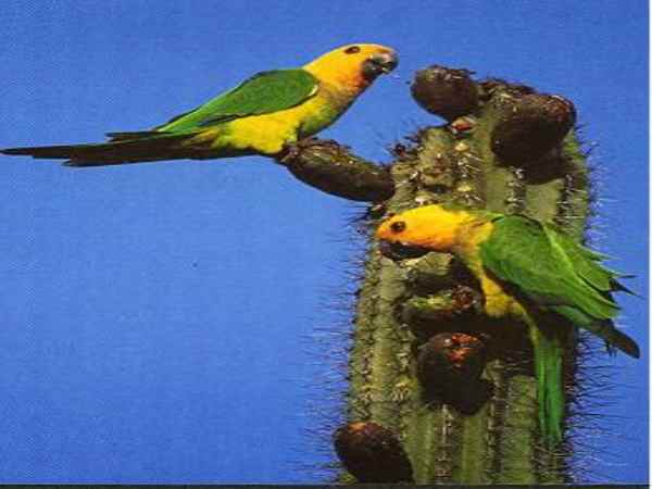 Der hier ansässige Lora ist eine Subspezies, die es nur auf Bonaire gibt. Der Lora ist ein 25 cm grüner Amazonenpapagei mit gelbem Gesicht und gelben Schultern. Er lebt im Nordteil der Insel aber in der trockenen Saison kommen sie auch in die Gärten von Rincon und Kralendijk. Circa 400 Loras leben in der Wildnis aber viermal so viele werden in Vogelkäfigen gehalten, was eigentlich gesetzlich verboten ist. Dadurch ist der Lora auch vom Aussterben bedroht. | ||